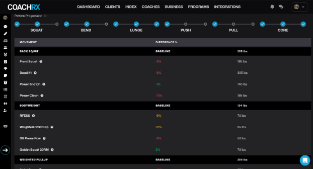 Furthermore, CoachRx incorporates a structural balance table, which aligns with the principles taught in OPEX CCP. This feature provides coaches with an overview of their client's structural balance, aiding in the identification of areas that require focused attention.